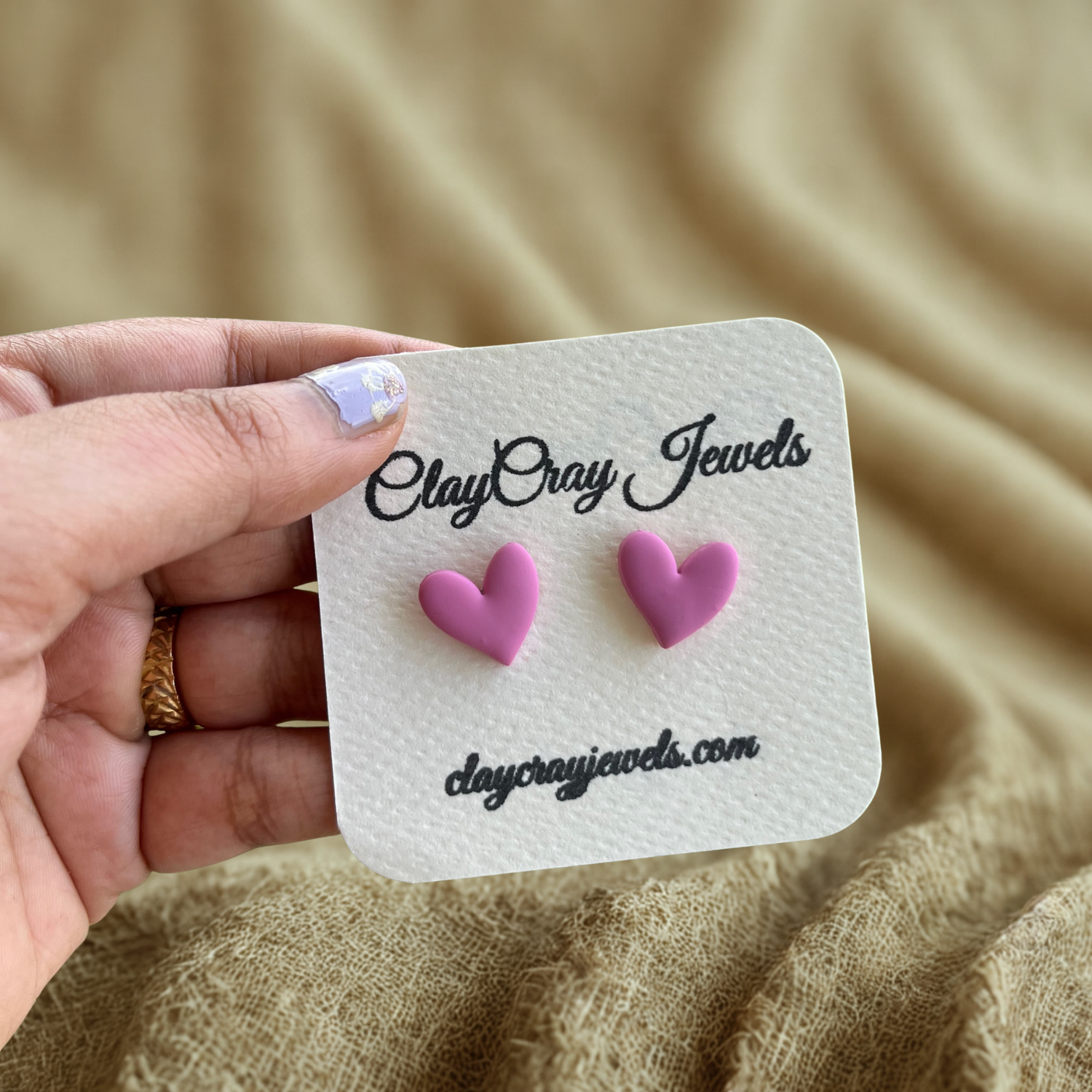 Pink Heart Stud Clay Earrings