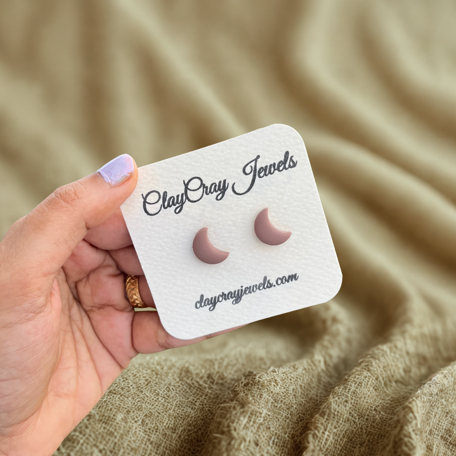 Beige Moon Stud Earrings
