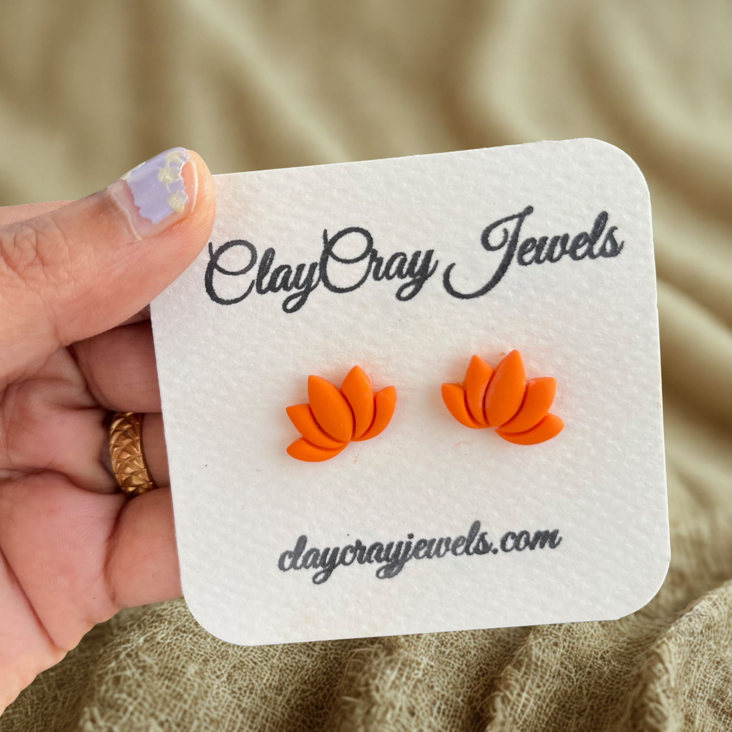 Orange Lotus Stud Earrinsg