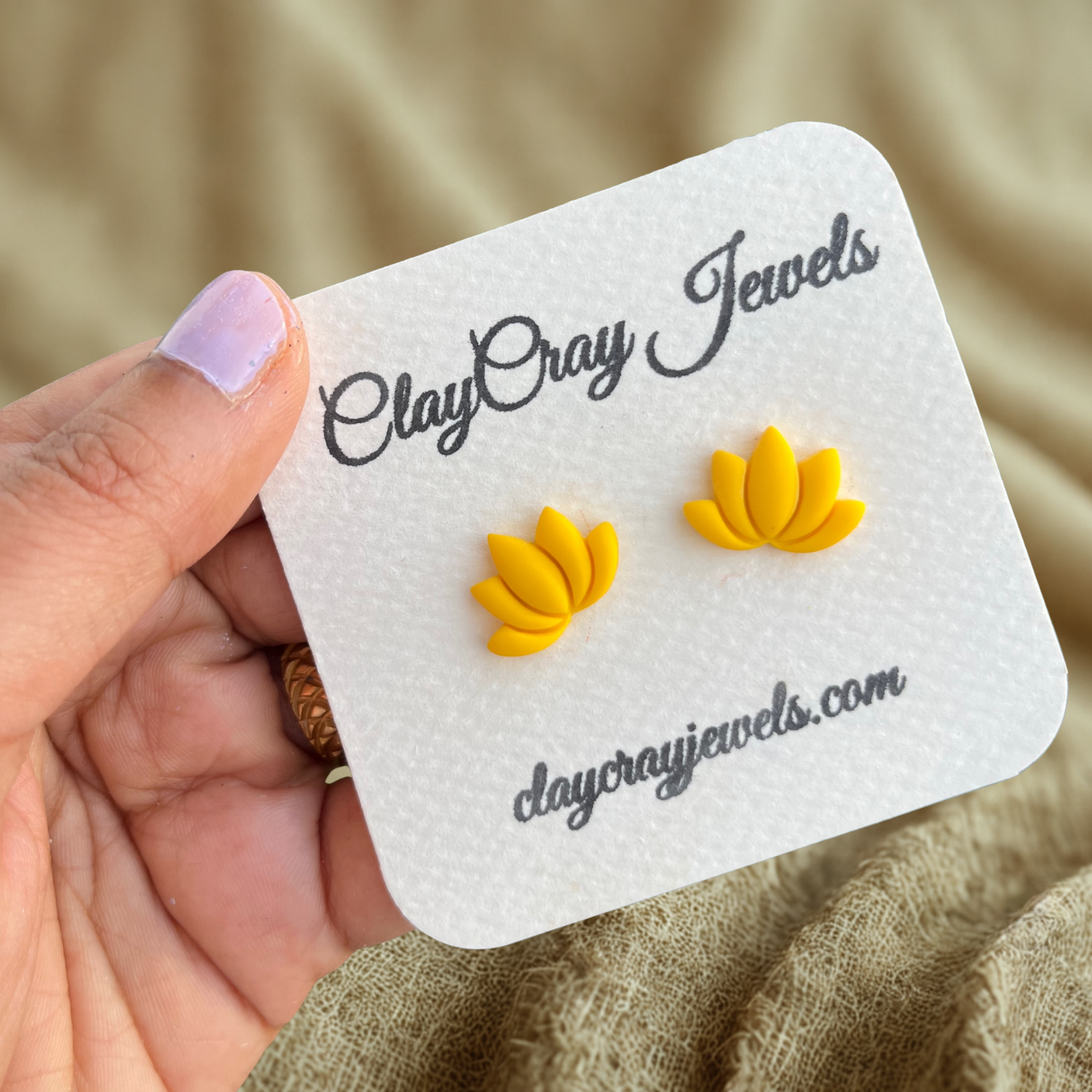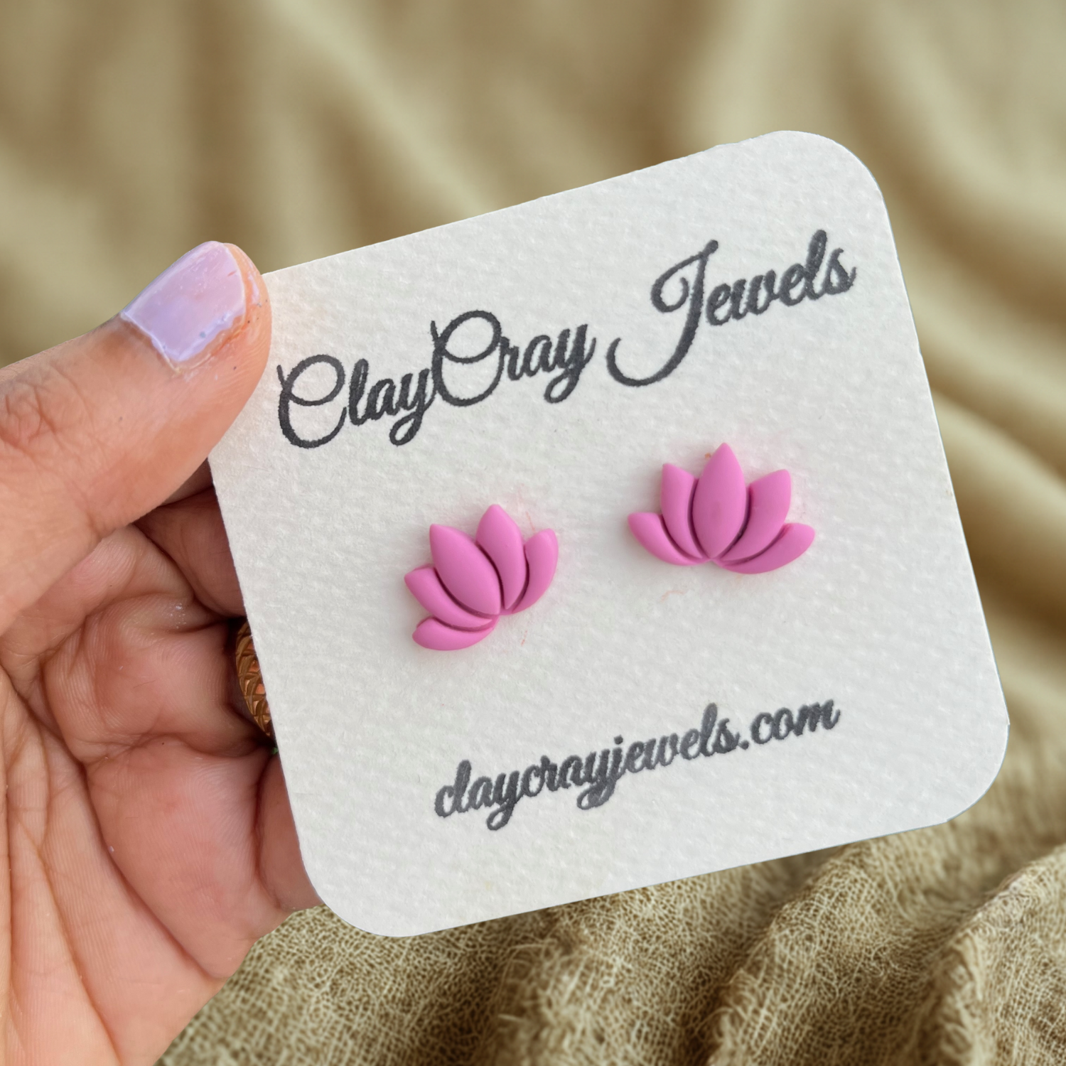 Beige Lotus Stud Earrings