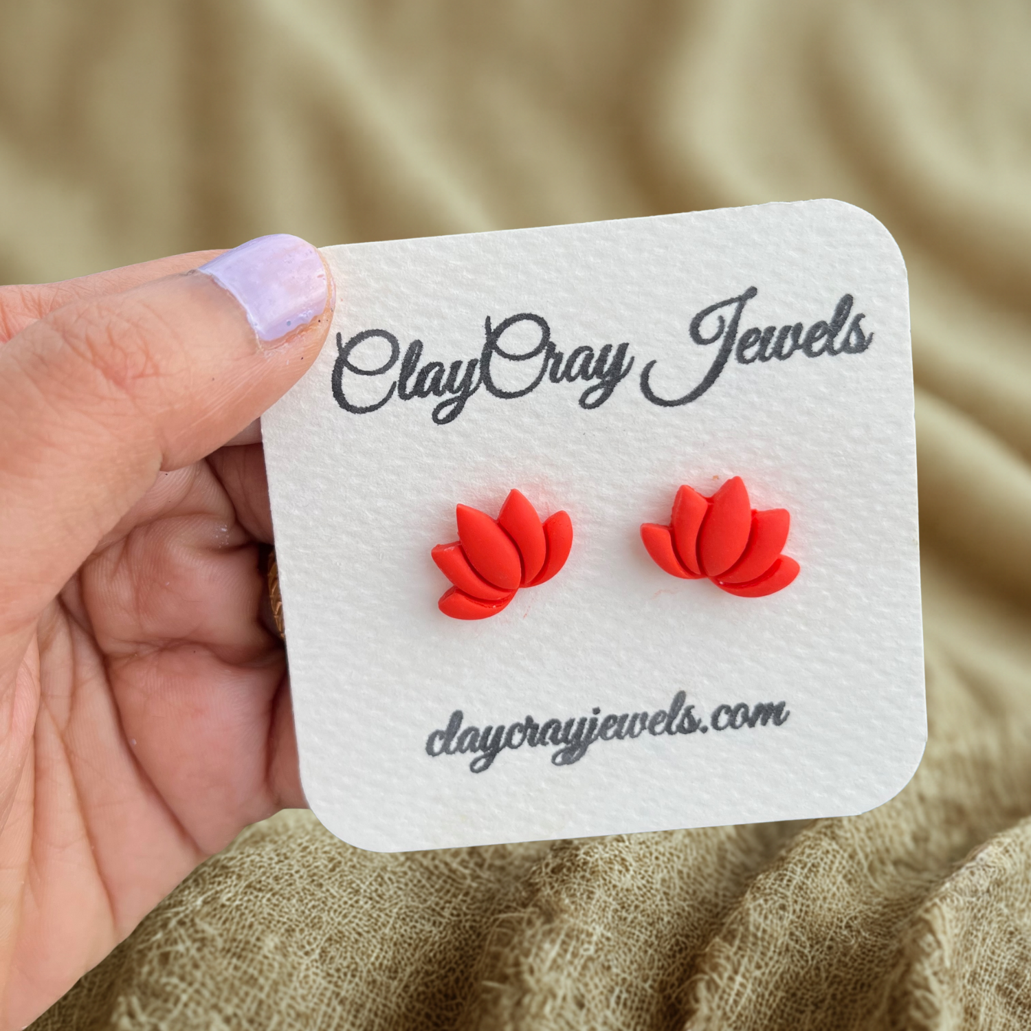 Red Lotus Stud Earrings
